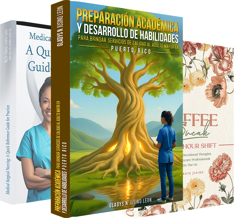 Dr. Gladys N. Jusino Leon, DNP, MSN, RN, CMSRN, GERO-BC, is an accomplished nurse, educator, and author with more than three decades of experience in healthcare. Her career has spanned medical-surgical nursing, geriatric and dementia care, and mentorship of future nurses. Known for blending clinical knowledge with compassion, she has dedicated her life to advancing both patient care and the nursing profession.